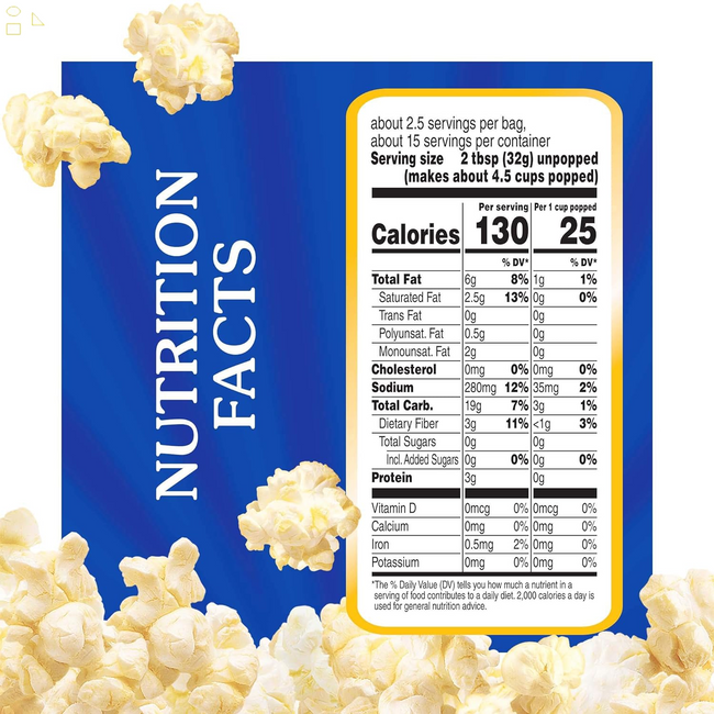 - Made with 100% whole grain popcorn and 0 grams of trans fat
