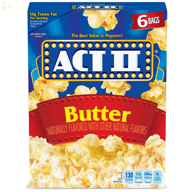 - Add ACT II microwave popcorn to your shopping list for office lunches, afternoon snacks and more