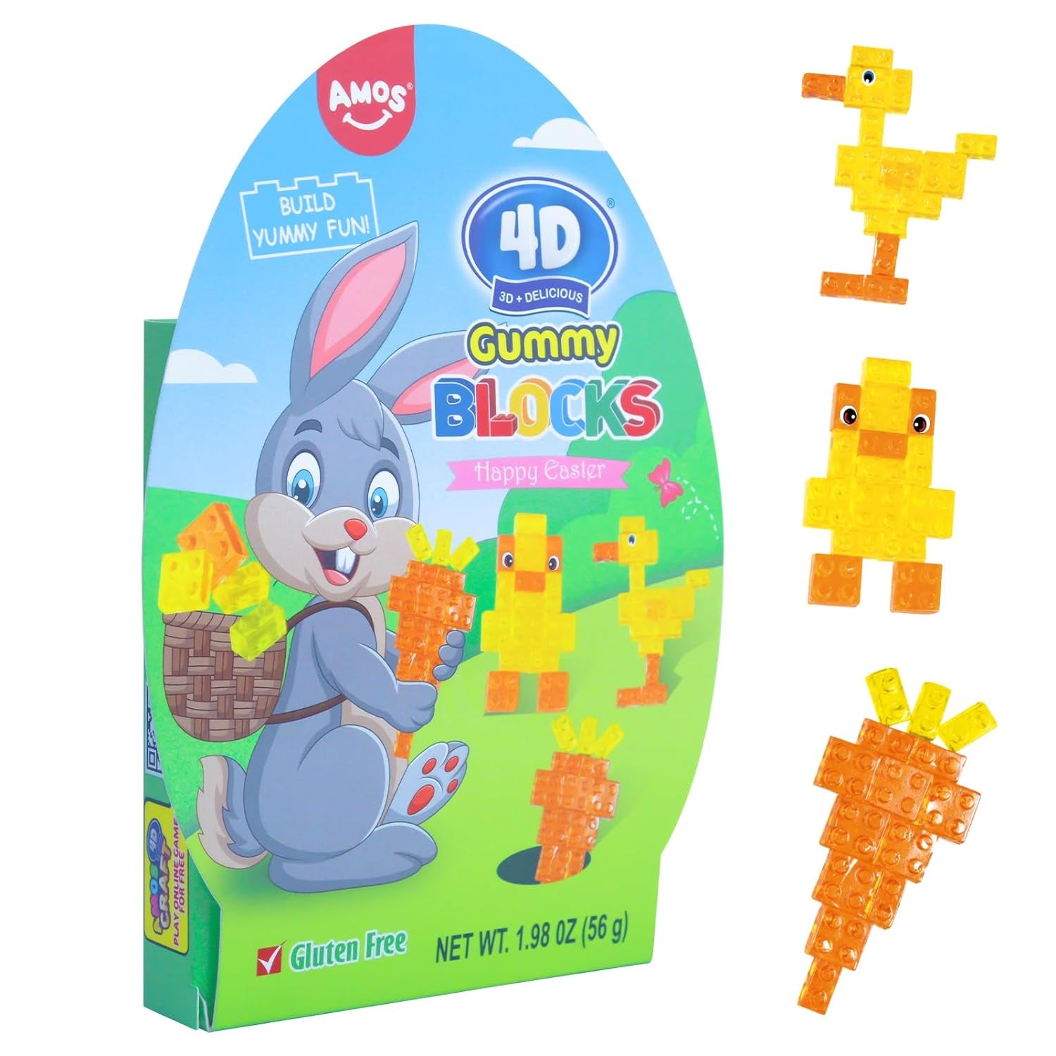 Amos Easter Candy 4D Gummy Blocks with Egg Shaped Box, Easter Basket Candy Treat, 1.98Oz. Box