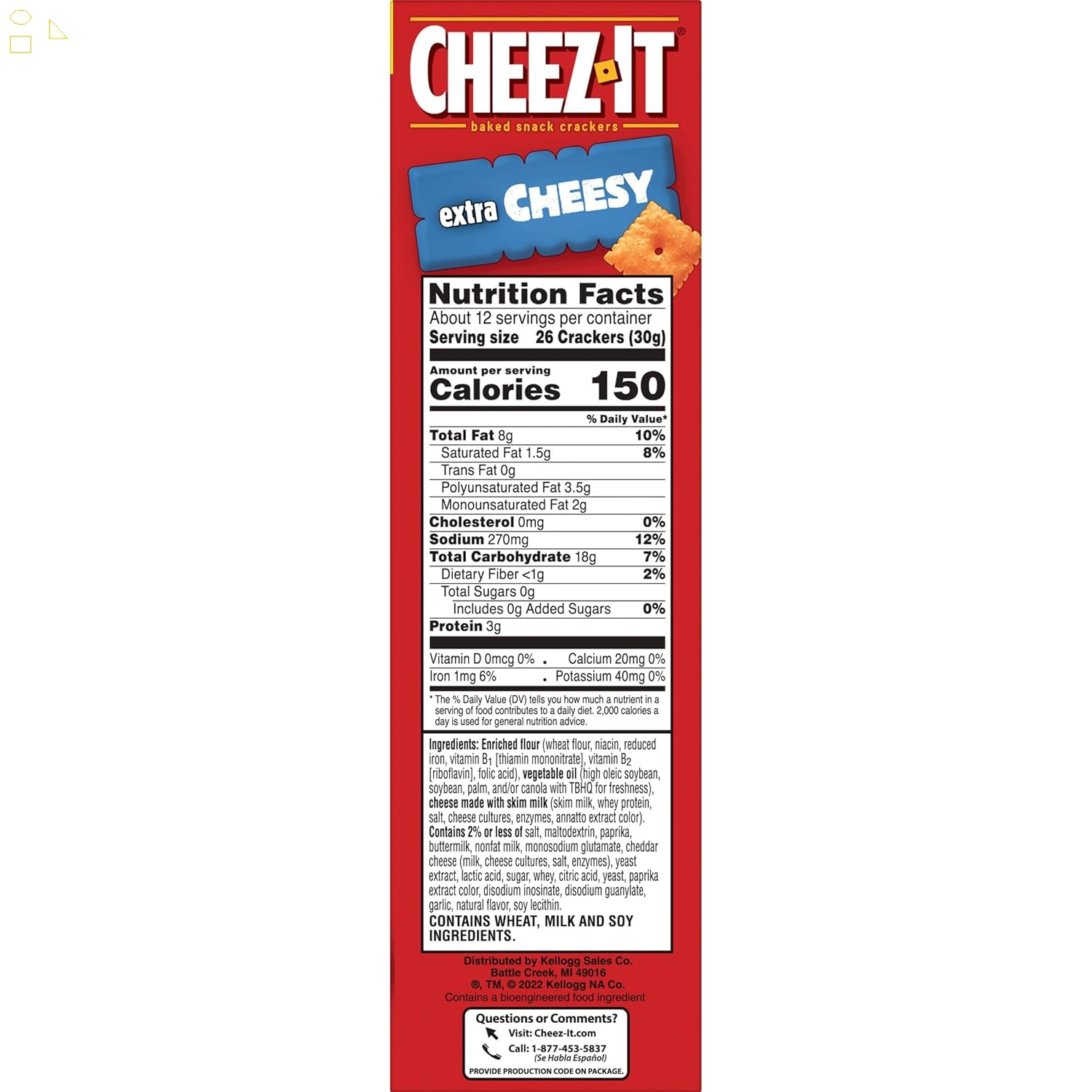 - Ignite cravings with the extra cheesy, crunchy satisfaction found in each and every Cheez-It cracker