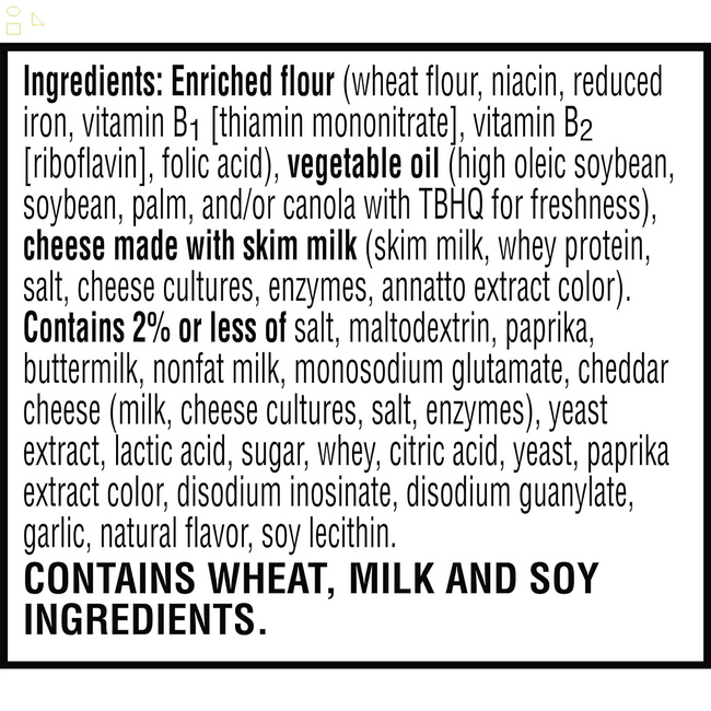- Made with 100% real cheese aged for a bold taste; Kosher Dairy; Contains wheat, milk, and soy ingredients