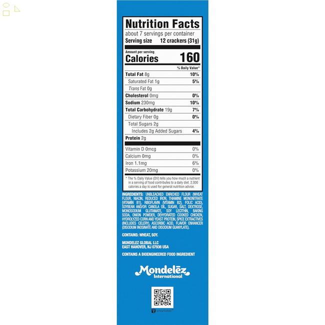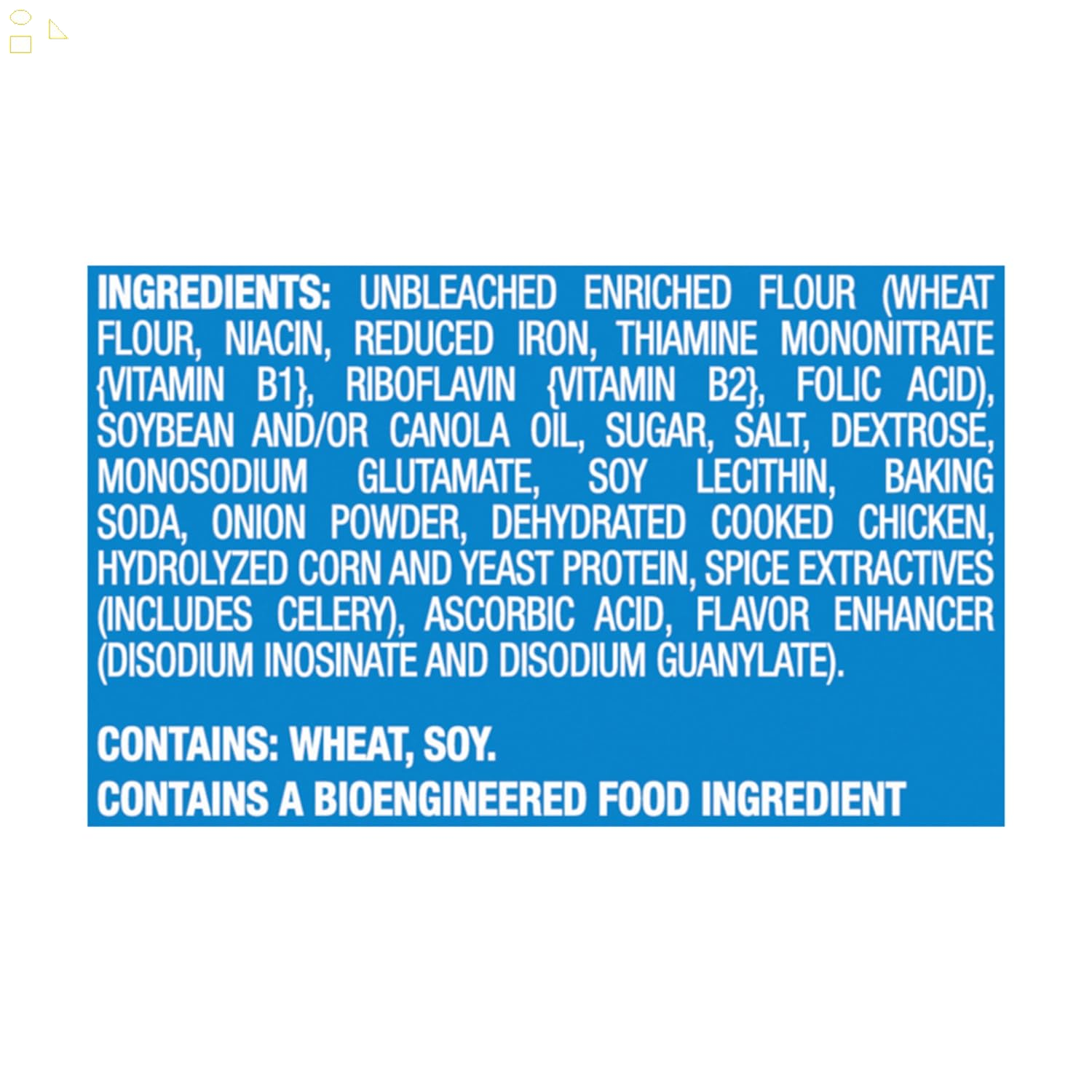 Make snack time flavorful with Chicken in a Biskit Original Baked Snack Crackers. Made with chicken, these baked crackers have a light, crunchy texture, and they're ideally seasoned. With 0 grams of trans fat per serving, these flavored crackers are great salty snacks for kids and adults on their own, or serve these toasted crackers with soup or salad to add flavor to your favorite dishes. These gourmet crackers come in a multi-serving box of bulk crackers that's great for sharing with your family or serving as party snacks. The sealed packaging keeps each box of crackers until you're ready to enjoy them.