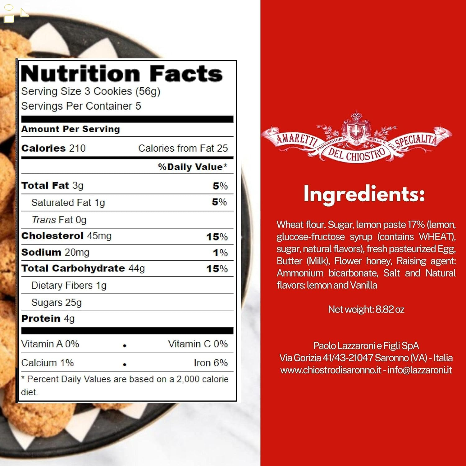 - 🌿 GUILT-FREE INDULGENCE: Indulge in these delightful Amaretti cookies without worry, as they are gluten-free, lactose-free, contain no trans fat, cholesterol, or added fat. Plus, explore the soft amaretti variety, which introduces almonds for a luxurious twist on the classic macaron flavor. You will get (1) 8.81 oz CHIOSTRO Cantuccioni Lemon Biscotti.