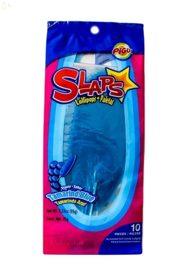 Dulces Pigui Slaps Tamarind Blue Flavor Paletas Mexican Candy (10 Lollipops). Sweet foldable lollipops are as fun to unwrap as they are to eat. A flavorful twist on Mexican paletas!