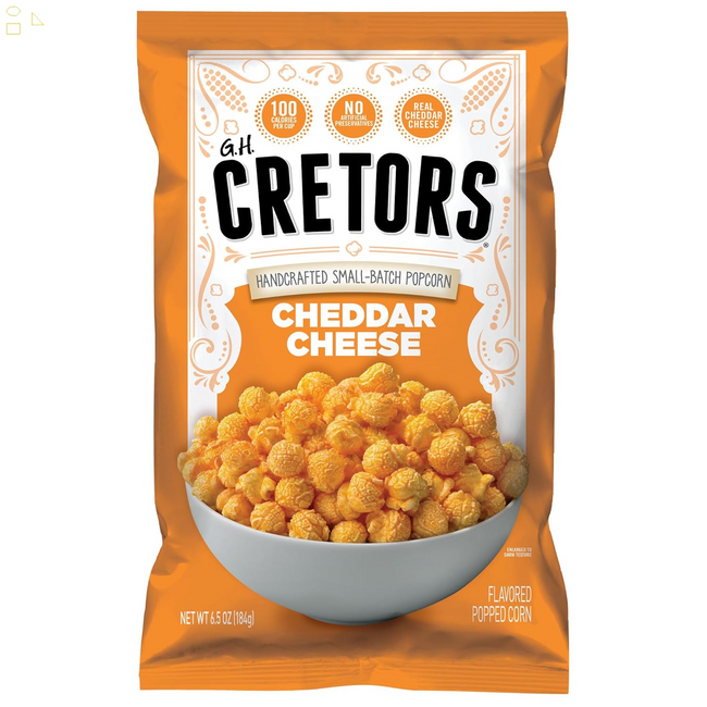 • Includes Twelve (12) 6.5oz bags of Cretors Cheddar Cheese Corn