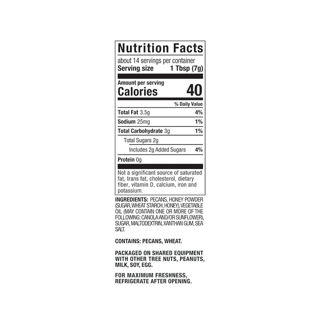 • HONEY-ROASTED PECAN PIECES: Pecans lightly-roasted with honey; 3.5-oz. (Pack of 1)
