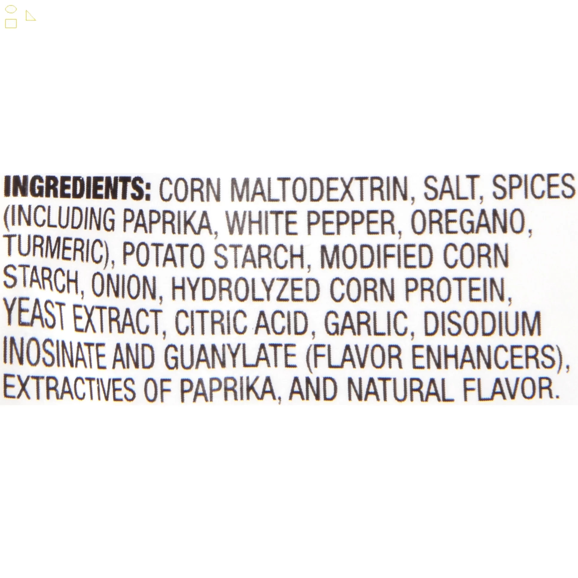 Corn Maltodextrin, Salt, Spices (Including Paprika, White Pepper, Turmeric), Potato Starch, Modified Corn Starch, Onion, Hydrolyzed Corn Gluten, Yeast Extract, Citric Acid, Garlic, Disodium Inosinate and Guanylate (Flavor Enhancers), Extractives of Paprika, and Natural Flavor./div>