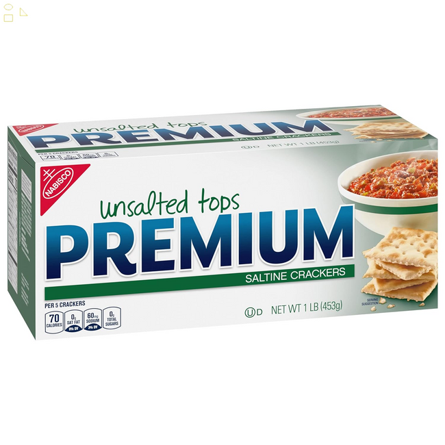 - One 16 oz box of Premium Unsalted Tops Saltine Crackers