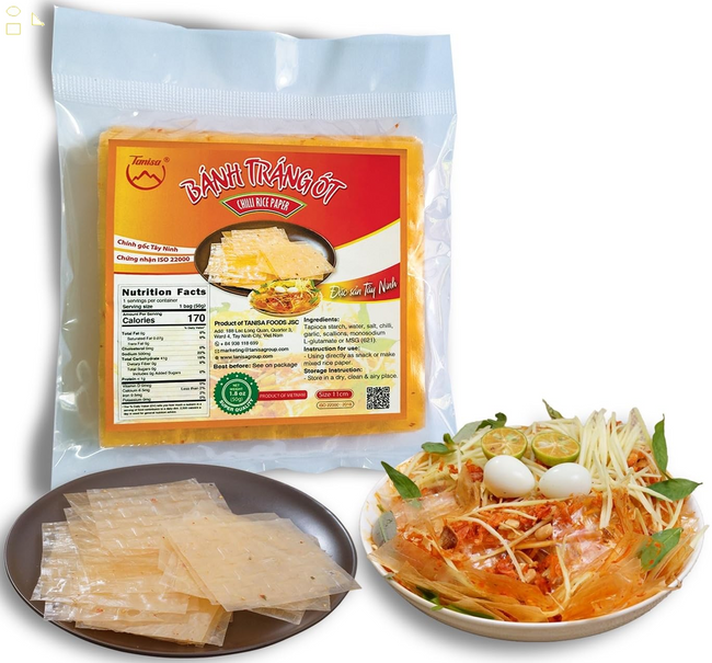 TANISA Chilli Rice Paper - the perfect fusion of traditional Vietnamese flavors with a modern twist. Our Chilli Rice Paper snacks bring you a delightful culinary experience like no other.