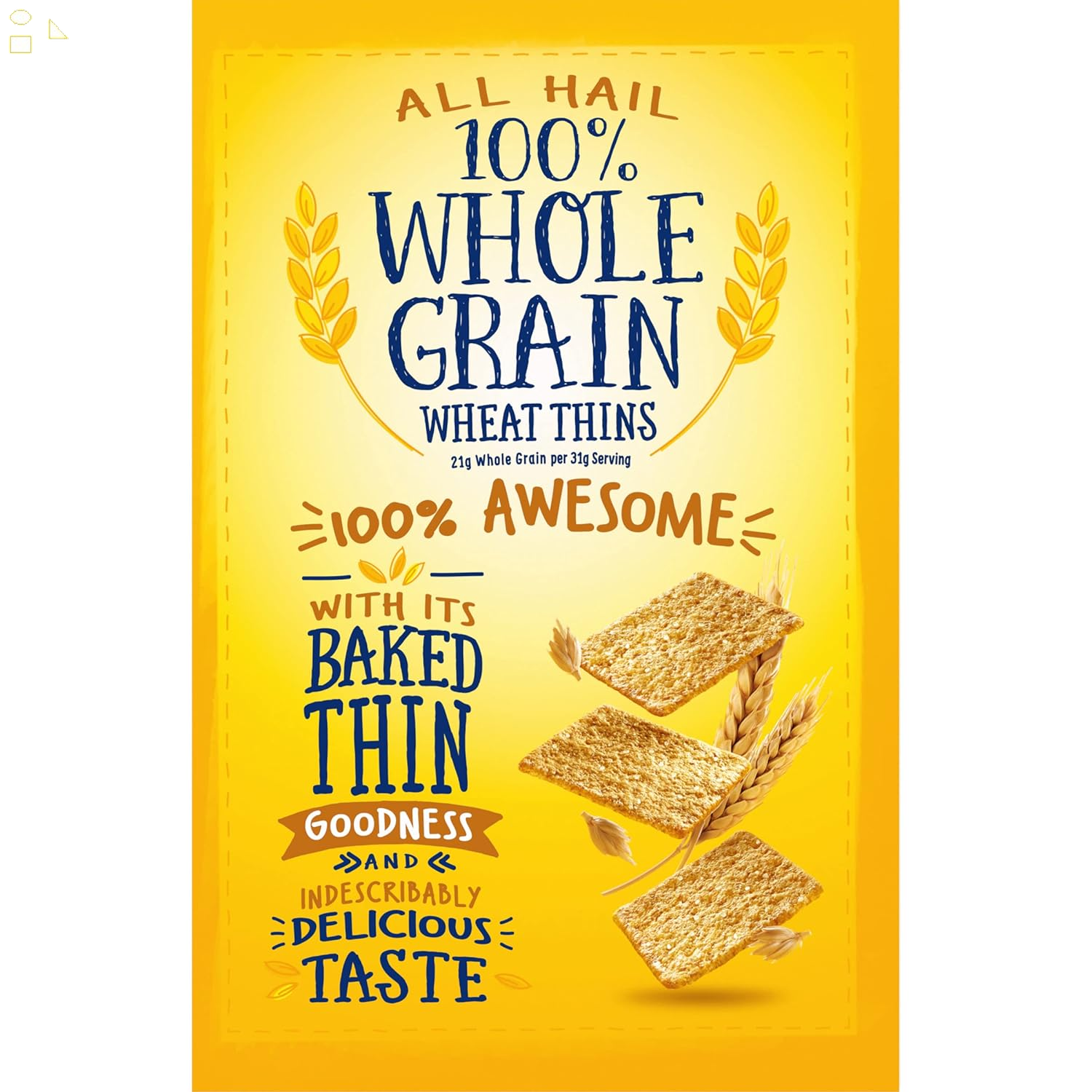 There’s nothing like the satisfying crunch of original Wheat Thins. The nutty, whole grain flavor makes these snack crackers the ideal cracker companion to dips, spreads and toppings. Baked with 100% whole grain wheat, these thin whole grain crackers have the crunchy texture and salty taste you love without artificial colors or flavors. Each serving of these cracker snacks has 21 grams of whole grains, with no cholesterol or high fructose corn syrup, making these crackers ideal whole grain snacks for kids and adults. Wheat Thins crackers are great holiday party snacks; pair these snack crackers with cheese, fruit or meat to create a delicious charcuterie board or enjoy them all on their own. These wheat crackers are perfect for creating stacks of cheese and crackers you can enjoy at home or work for a crowd-pleasing snack. Each Wheat Thins cracker box is sealed for freshness.