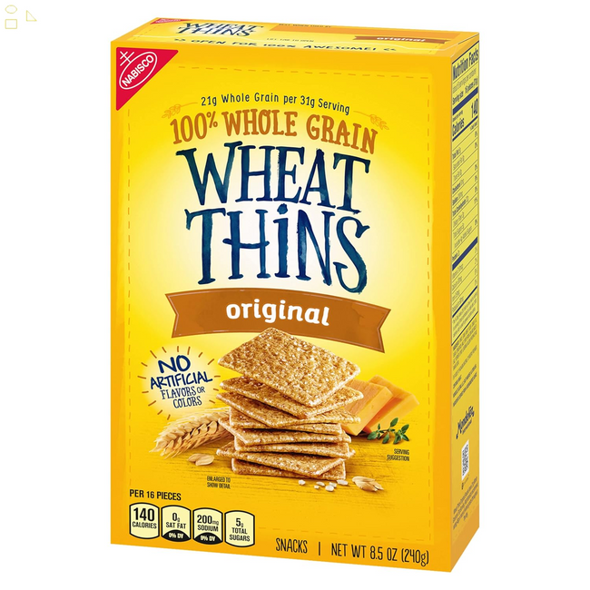 • One 8.5 oz box of Wheat Thins Original Whole Grain Wheat Crackers (packaging may vary)