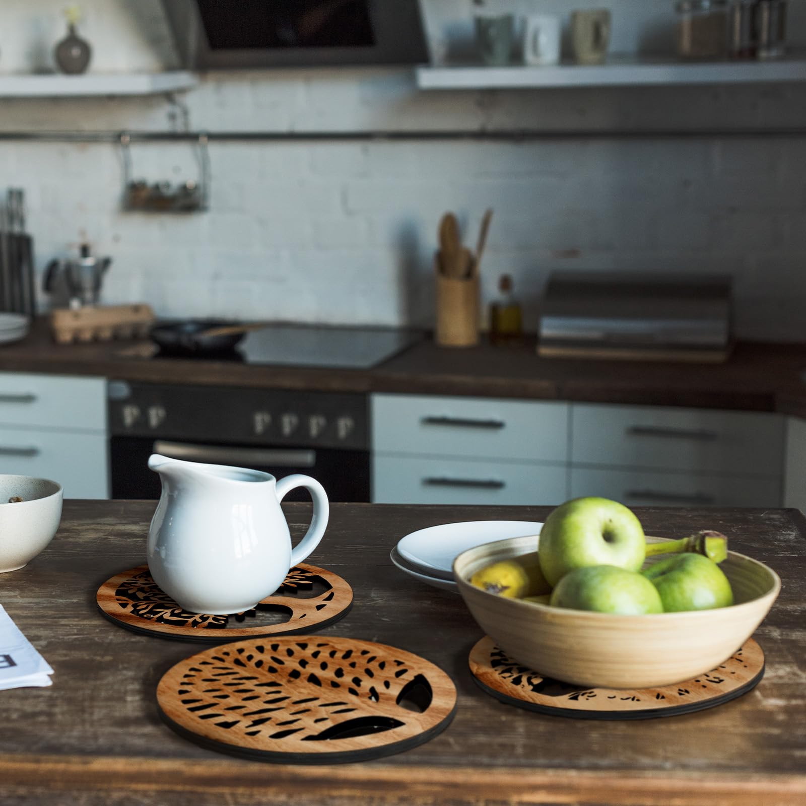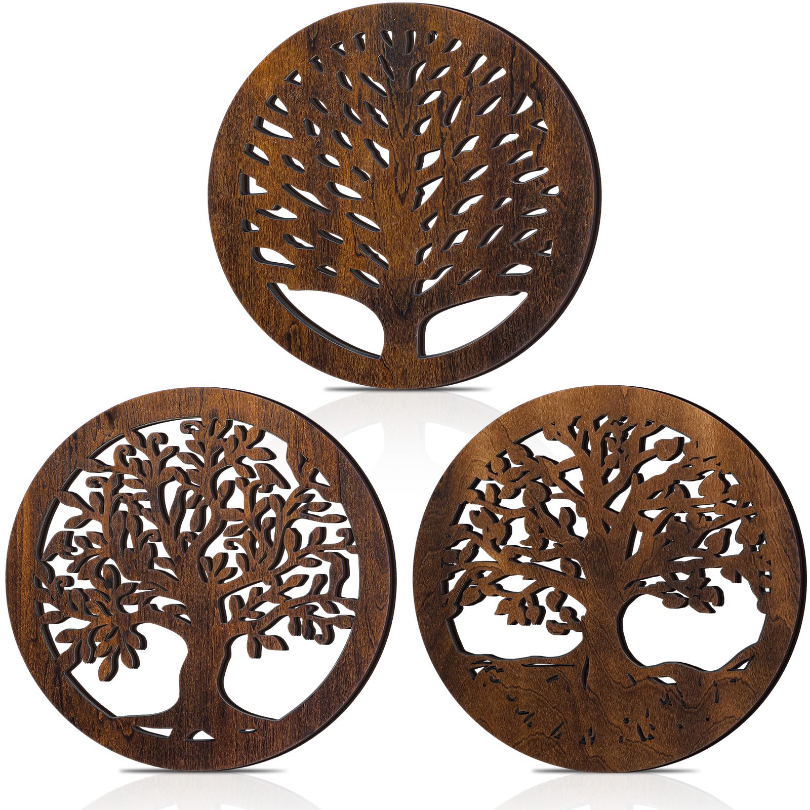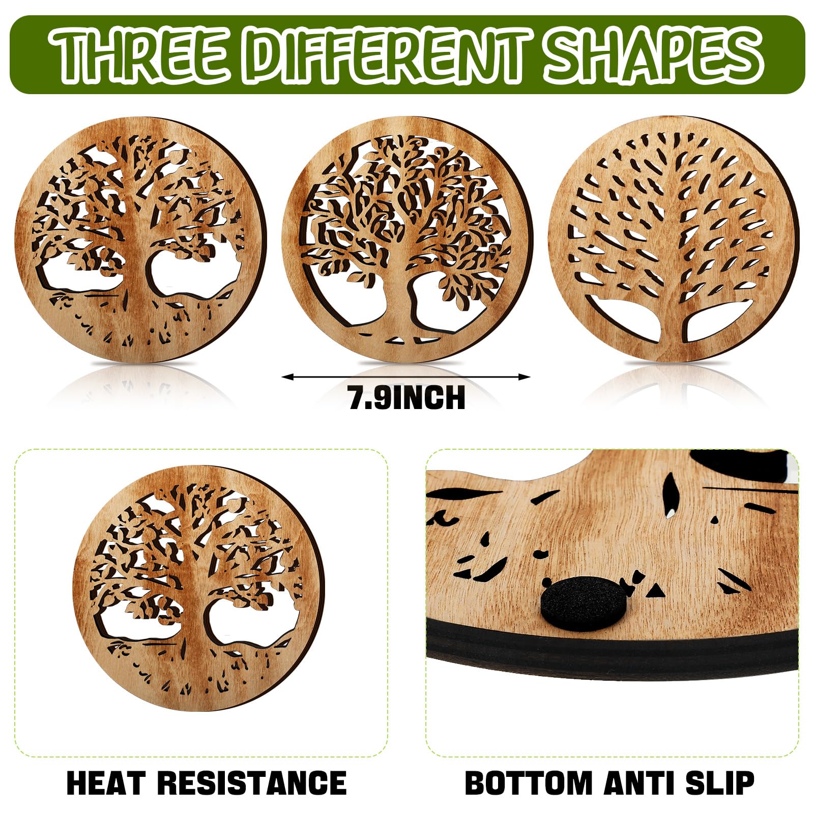 - Enough to Use and Share: our package comes with 3 pieces of wooden tree trivets, designed intricately in a compact, round shape; Measuring approx. 8 inches in diameter, they are the proper size for holding various sizes of pots, pans, dishes and so on