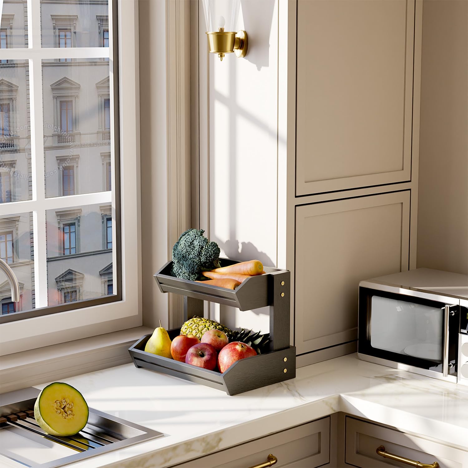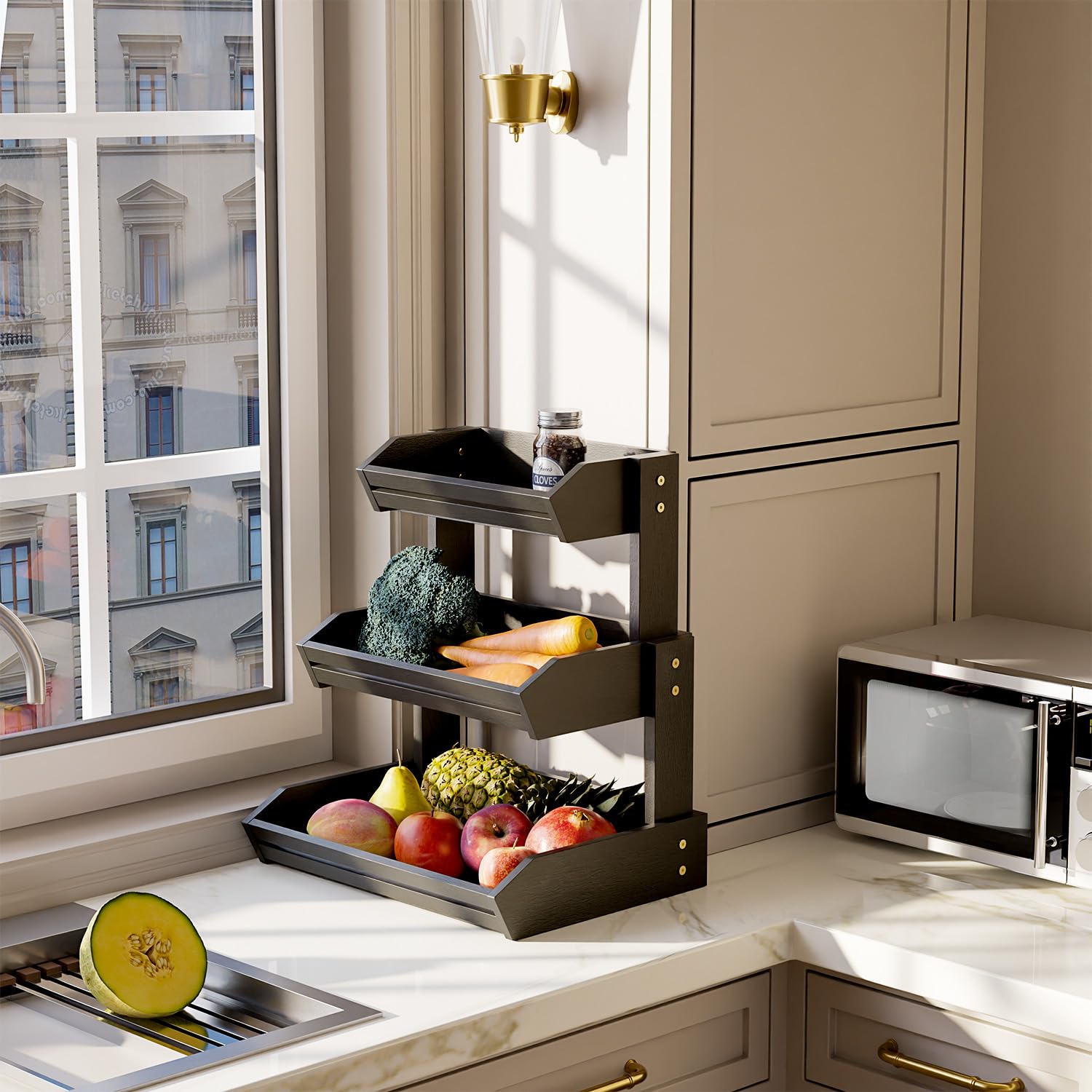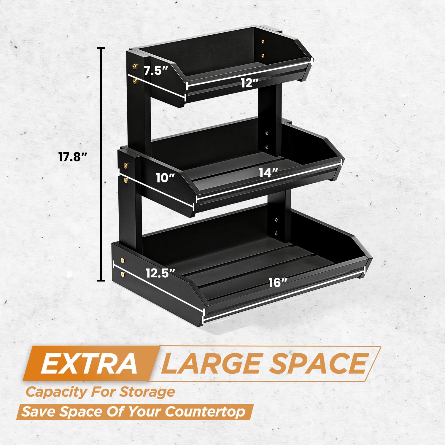 - ✅ Extra Large Space : Extra large size with 16”W x 12.5”L for Bot layer , 14”W x 10”L for Mid layer , 12”W x 7.5”L for Top layer can hold more than a dozen fruits and vegetables for each level. Let's organize your daily kitchen foods and keep them within arm's reach. Great for used in the kitchen, restaurant, fruit shop and more.