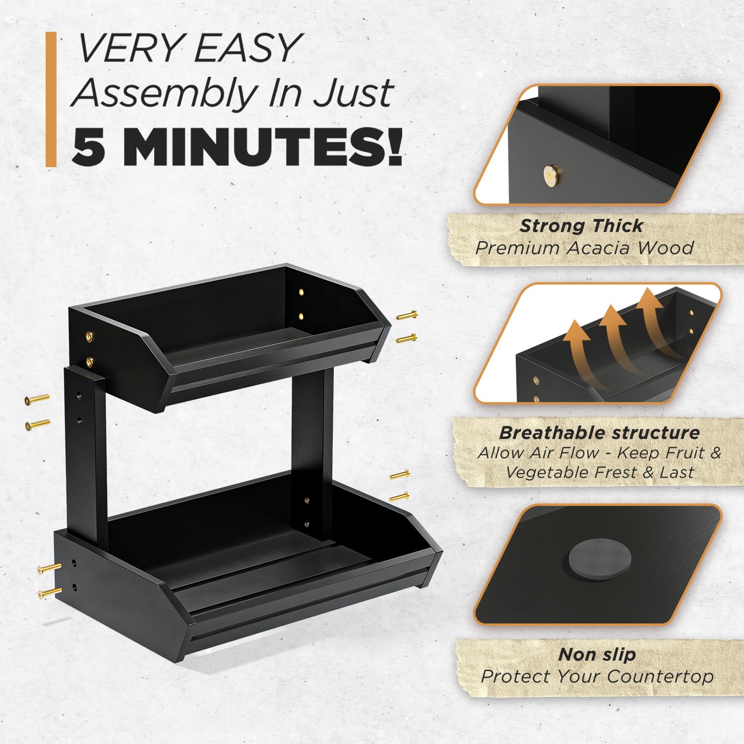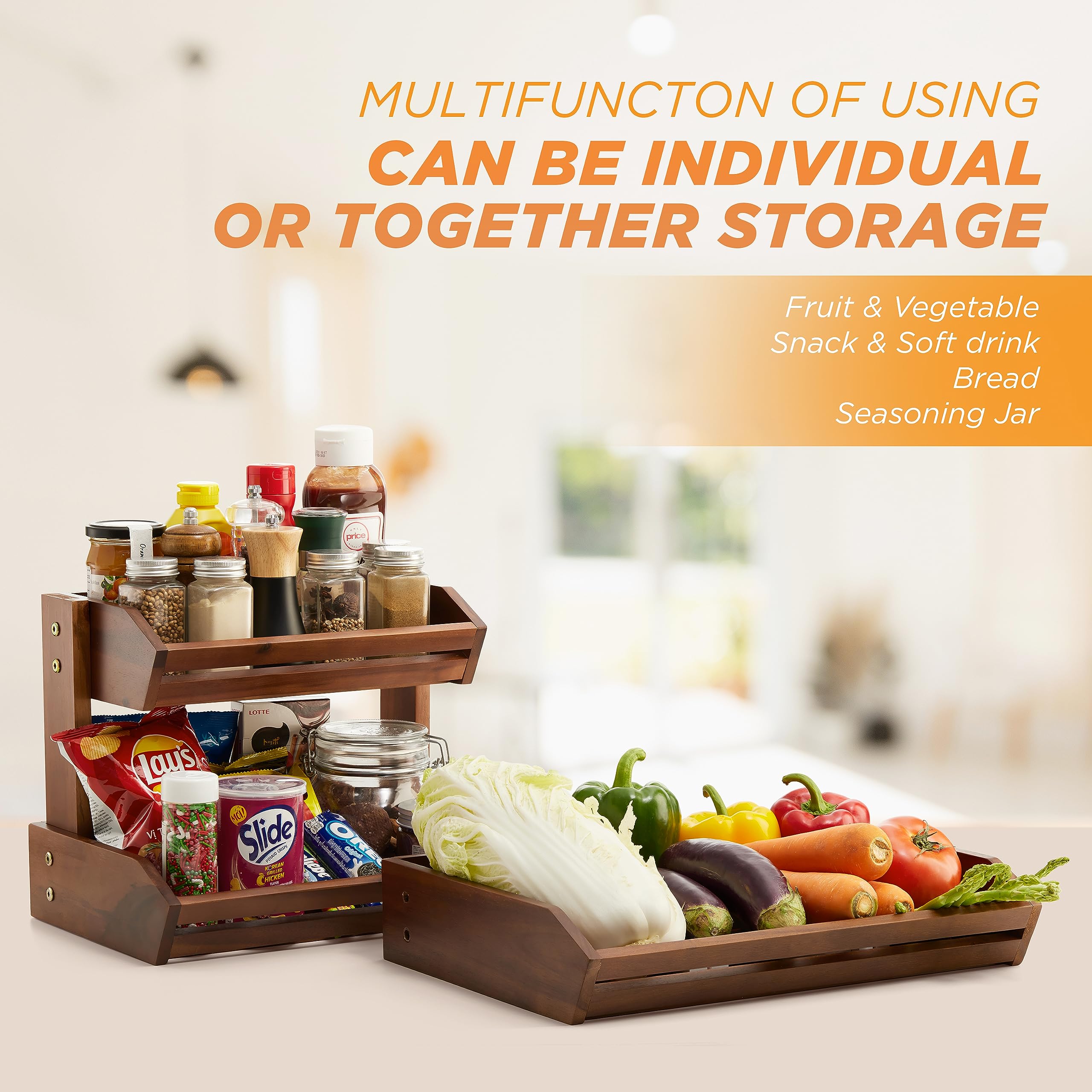 - ✅ Strong And Study Material Structure: Made of 100% Acacia wood with breathing structure. Acacia wood has good resistance to contact with water, which makes it one of the most suitable woods for indoor & outdoor use. It is a very durable material, capable of resisting changes in humidity very well. The ventilated layer design will keep the veggies and fruits fresh and last longer