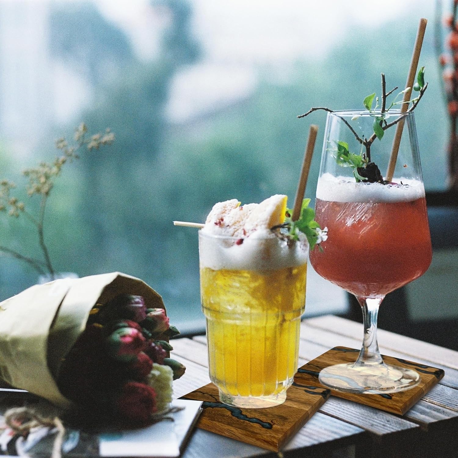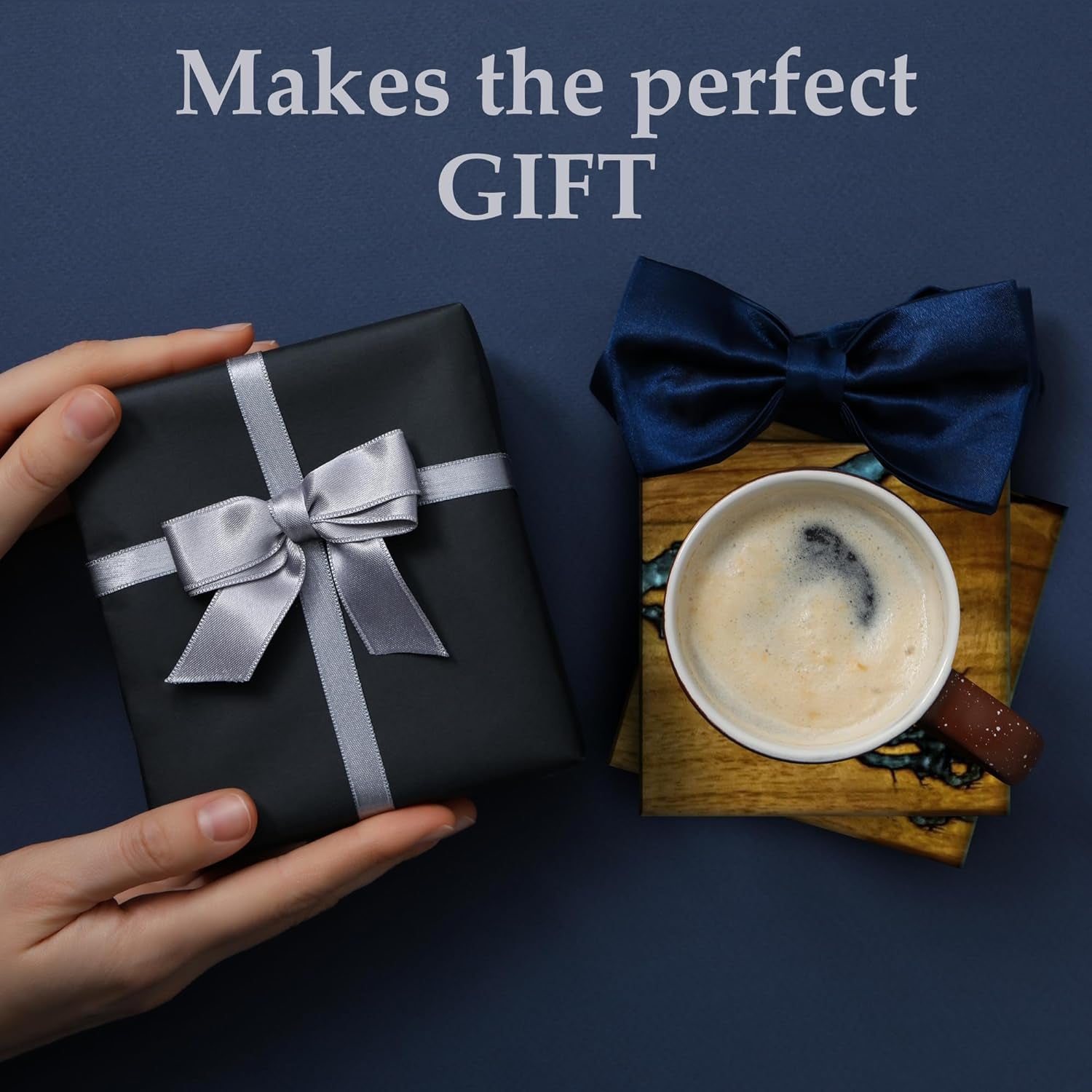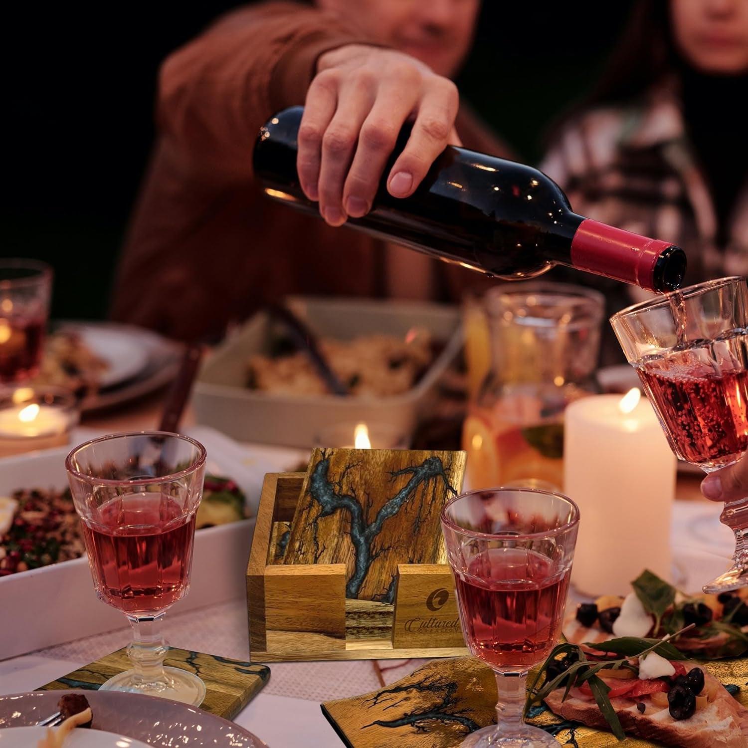 - STUNNING BLEND of natural Acacia wood and vibrant epoxy resin coasters are a conversation piece at any get together.