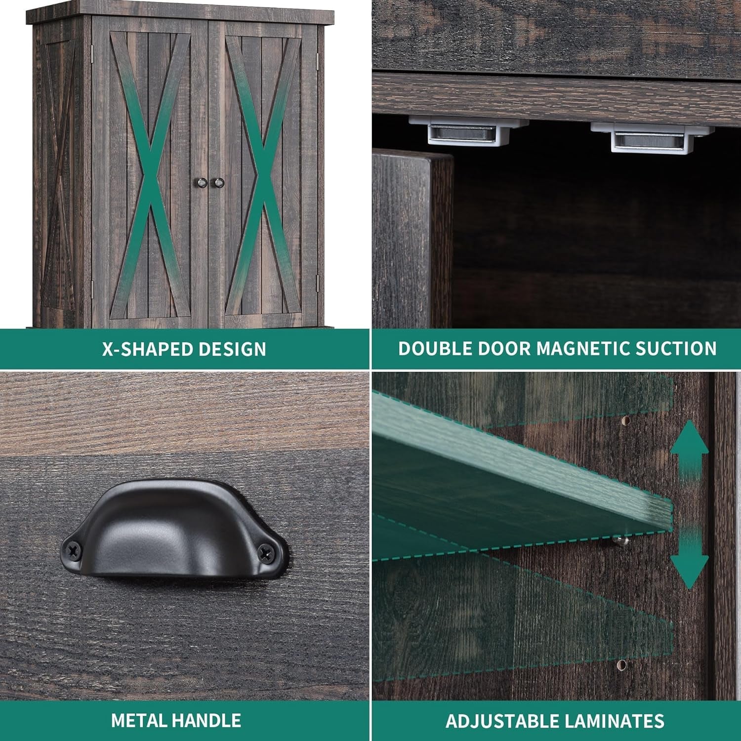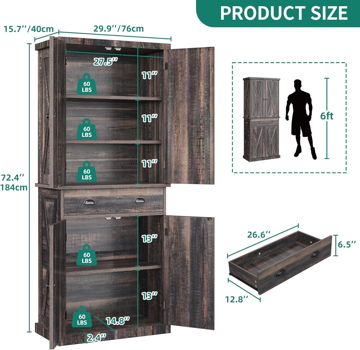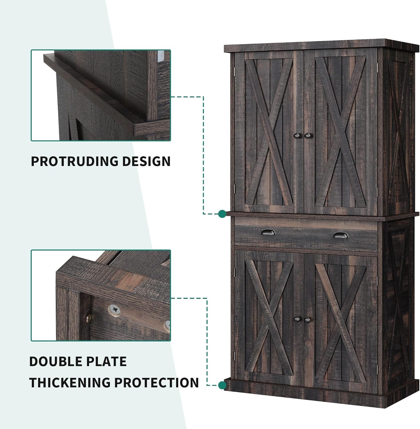 - Multipurpose Pantry Cabinet: Our pantry storage cabinet with an X-shaped barn door design, antique metal handles and exquisite wood grain, make it adds rich farmhouse style, suitable for for kitchen, living room, hallway or dining room etc.