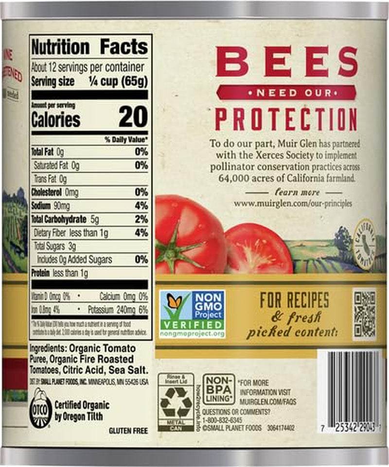 Grown under the watchful eye of farmers who are passionate about organic agriculture, Muir Glen Crushed Fire Roasted Tomatoes are the perfect shortcut to a smoky, sweet pasta sauce or salsa recipe. Harvested at their peak, lightly seasoned with sea salt, USDA Certified Organic, Non-GMO Project Verified and gluten free, these crushed tomatoes are a must-have pantry staple when you want to add some smoky flavor to your red sauces. Muir Glen organic tomatoes from the vine are an easy and delicious way to upgrade your favorite recipes. These organic tomatoes are grown in California and canned quickly for peak freshness.