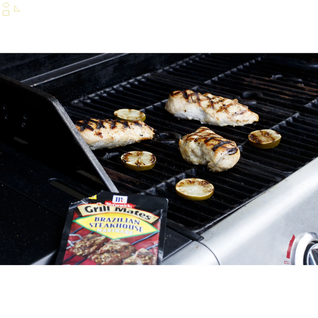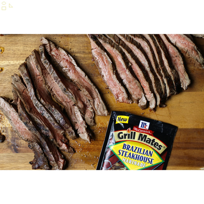 McCormick Grill Mates Gluten Free Brazilian Steakhouse Marinade, 1.06 oz Envelope. A South American-inspired blend of cilantro, garlic, thyme, and red and black peppers, this marinade is a quick way to add worldly flavor to your favorite dishes. Try with skewered steak, chicken, shrimp, or kebobs for a Brazilian Steakhouse experience. This McCormick Grill Mates Brazilian Steakhouse Marinade is in a Plastic packet that is 1.06 ounces. Store this shelf-stable item at an ambient temperature.