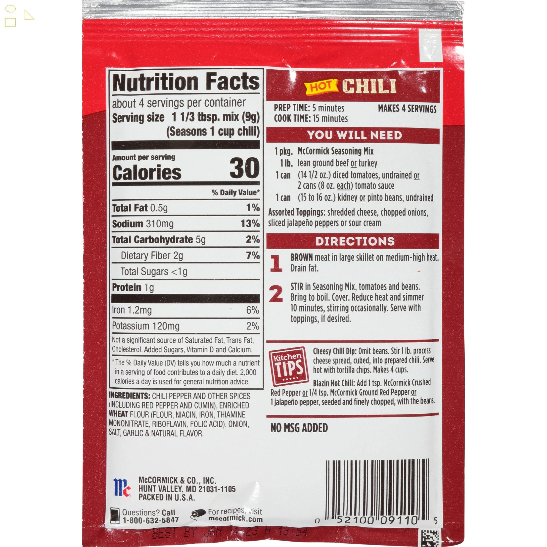 - McCormick Hot Chili Seasoning Mix, 1.25 oz Envelope