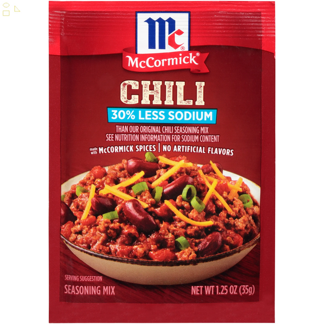 - McCormick Less Sodium Chili Seasoning Mix, 1.25 oz Envelope