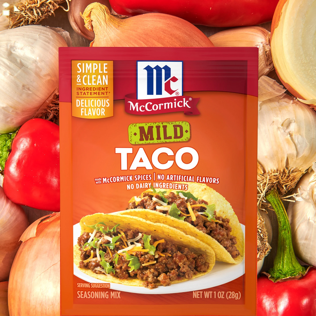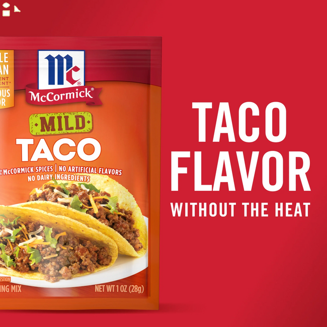 - MILD TACO FLAVOR: Trusted taco flavor with a mild heat made with ingredients like paprika, chili pepper, cumin, and onion for adding south-of-the-border zip to tacos and your favorite foods.