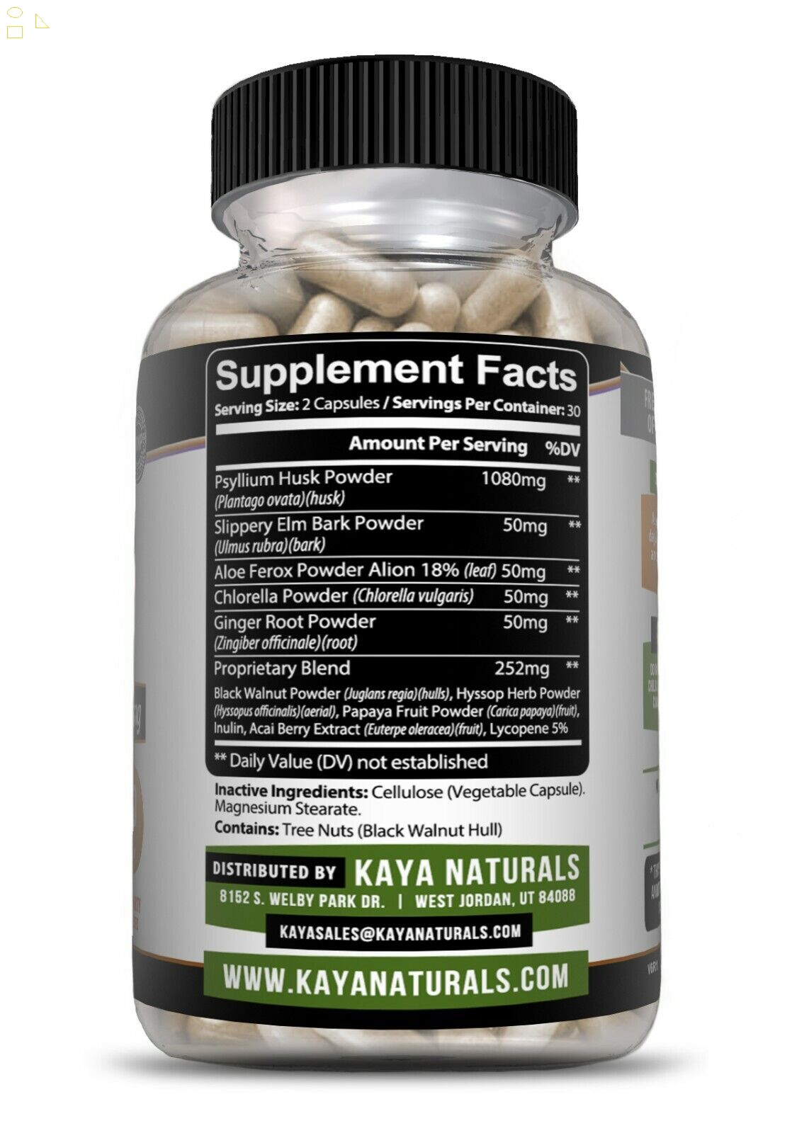 Psyllium Husk 60ct - Colon Cleanse, Detox Toxins, Energy boost, Weight loss, Regularity & Digestion Control, 120 Caps Total