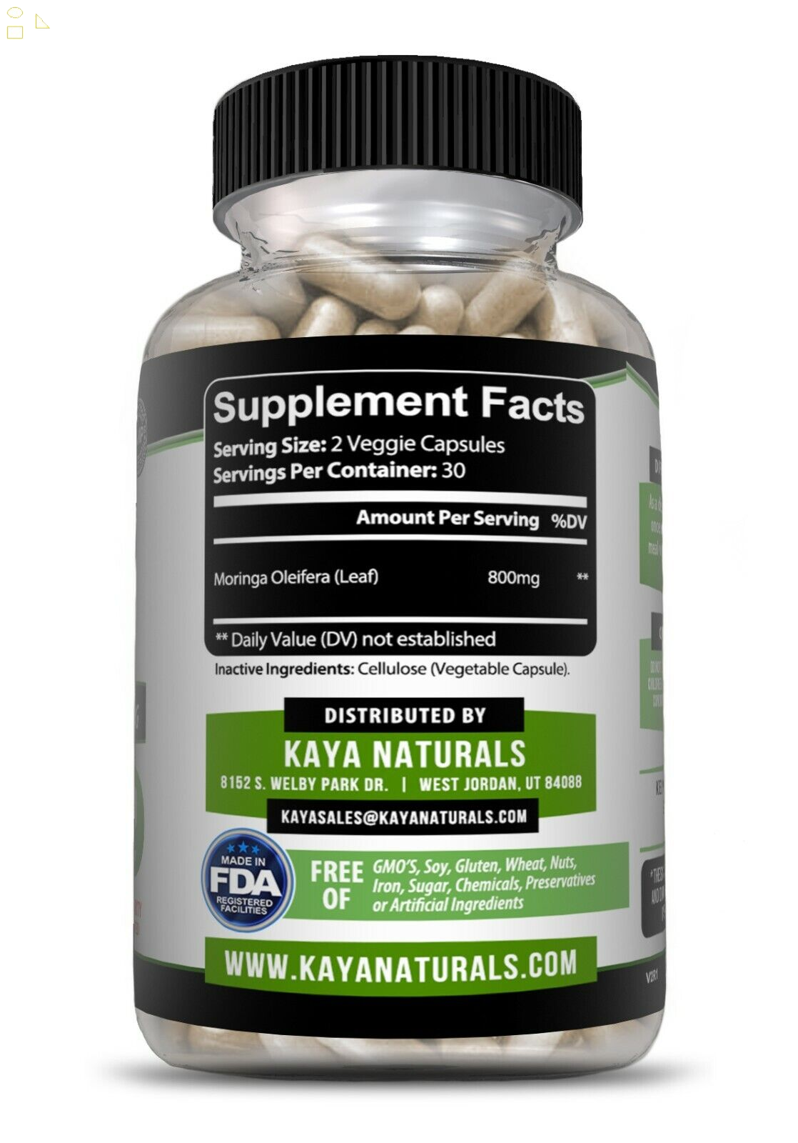 (2 Bottle Pack) Premium Moringa, 60 Count, Detox, Wellness, Antioxidant, Mood, Anti-inflammatory