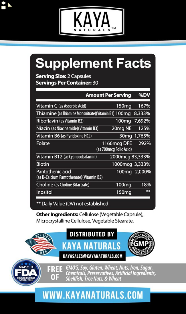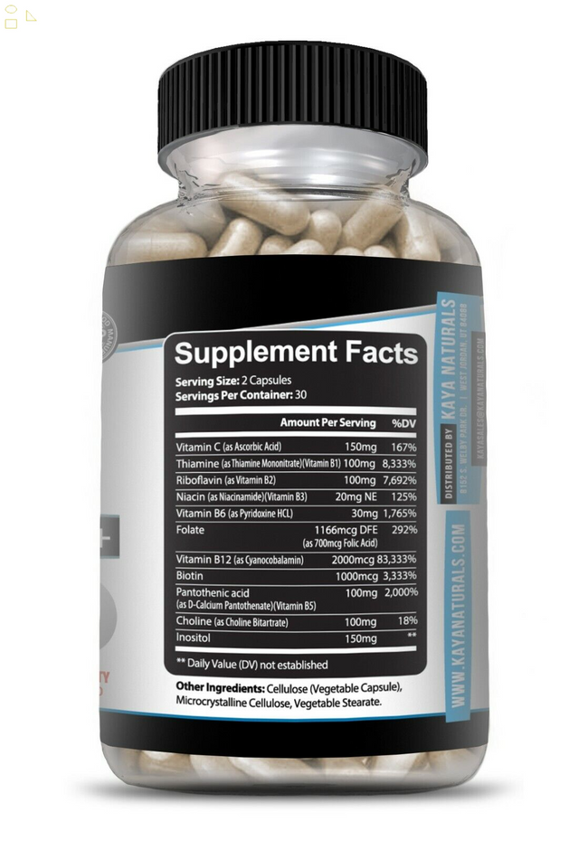 B-12 Complex 60ct, Powerful B1, B2, B3, B5, B6, B8 & B12, Energy, Metabolism Aid
