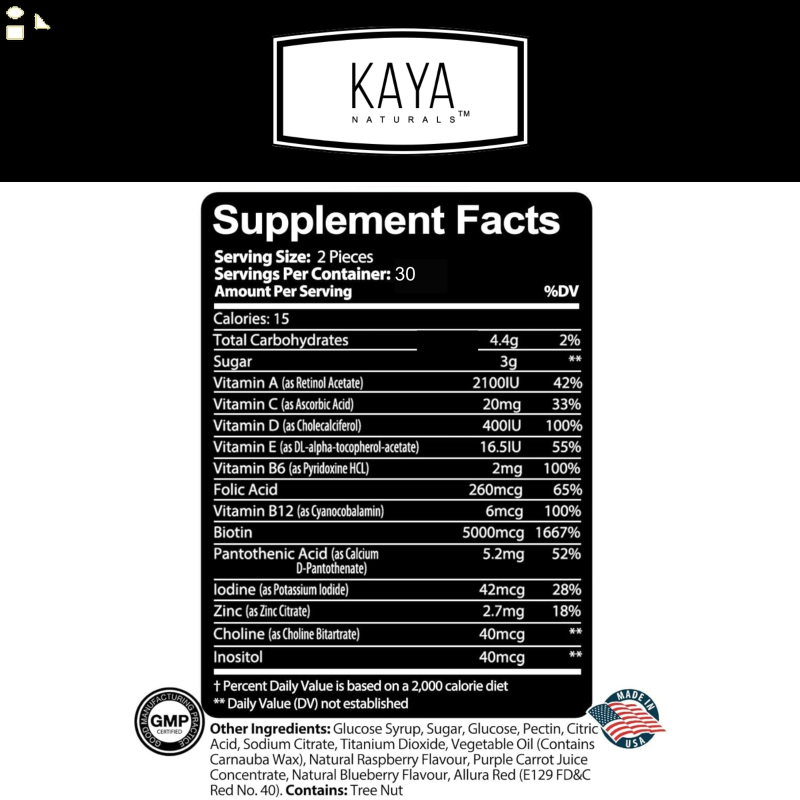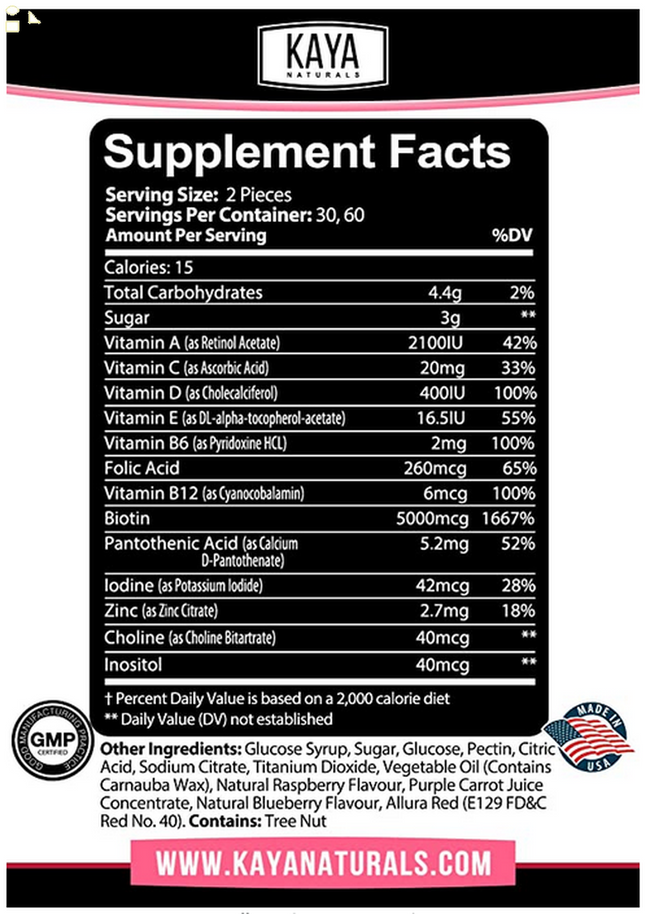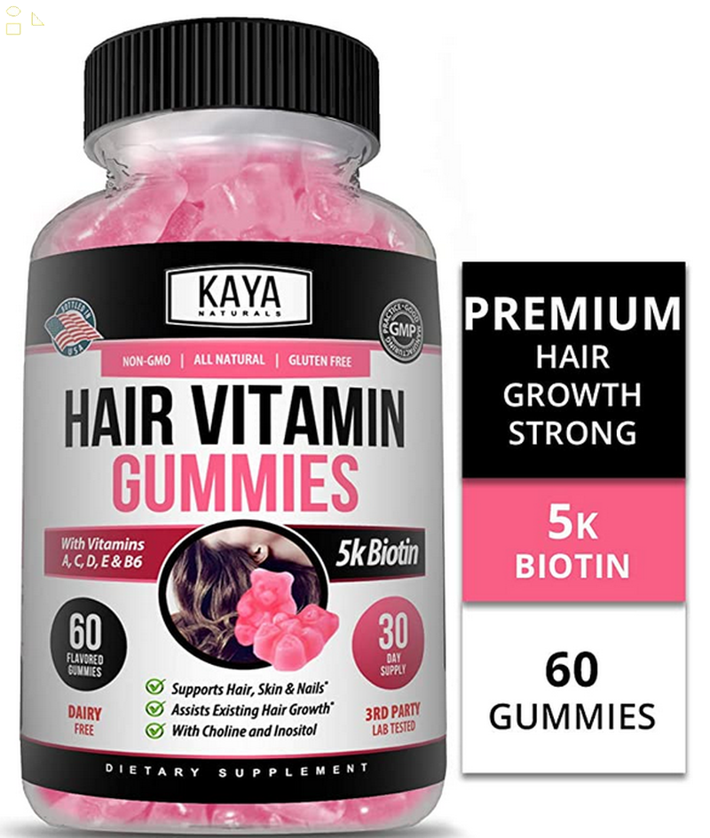 Hair Vitamin Gummies 60 Count, BIOTIN Vitamin D Vitamin B-12 A Folic Acid Support Hair Skin & Nails