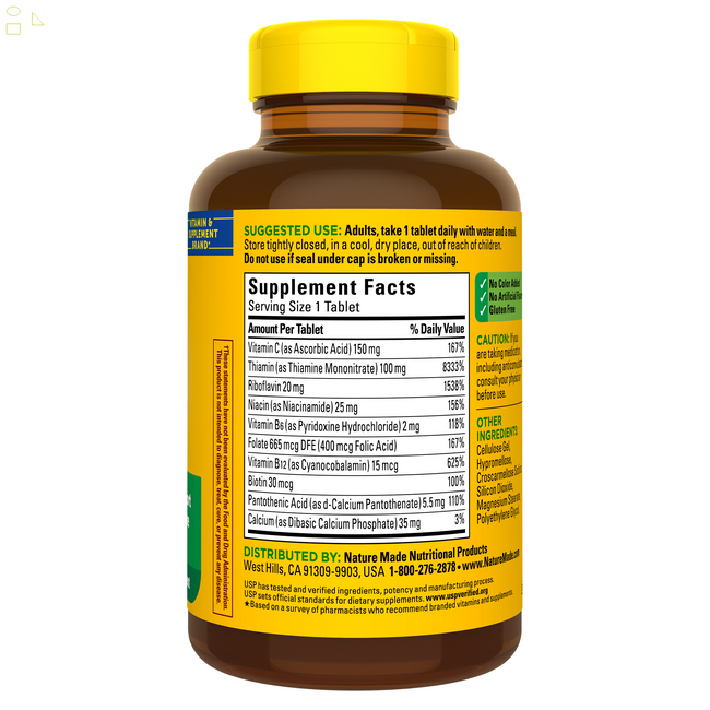 , .Nature Made Super B-Complex, 460 Tablets Nature Made® Super B-Complex provides all 8 essential B vitamins (Thiamin, Riboflavin, Niacin, B6, Folic Acid, Biotin, Pantothenic Acid and B12), which help brain and body cells produce the energy they need to...