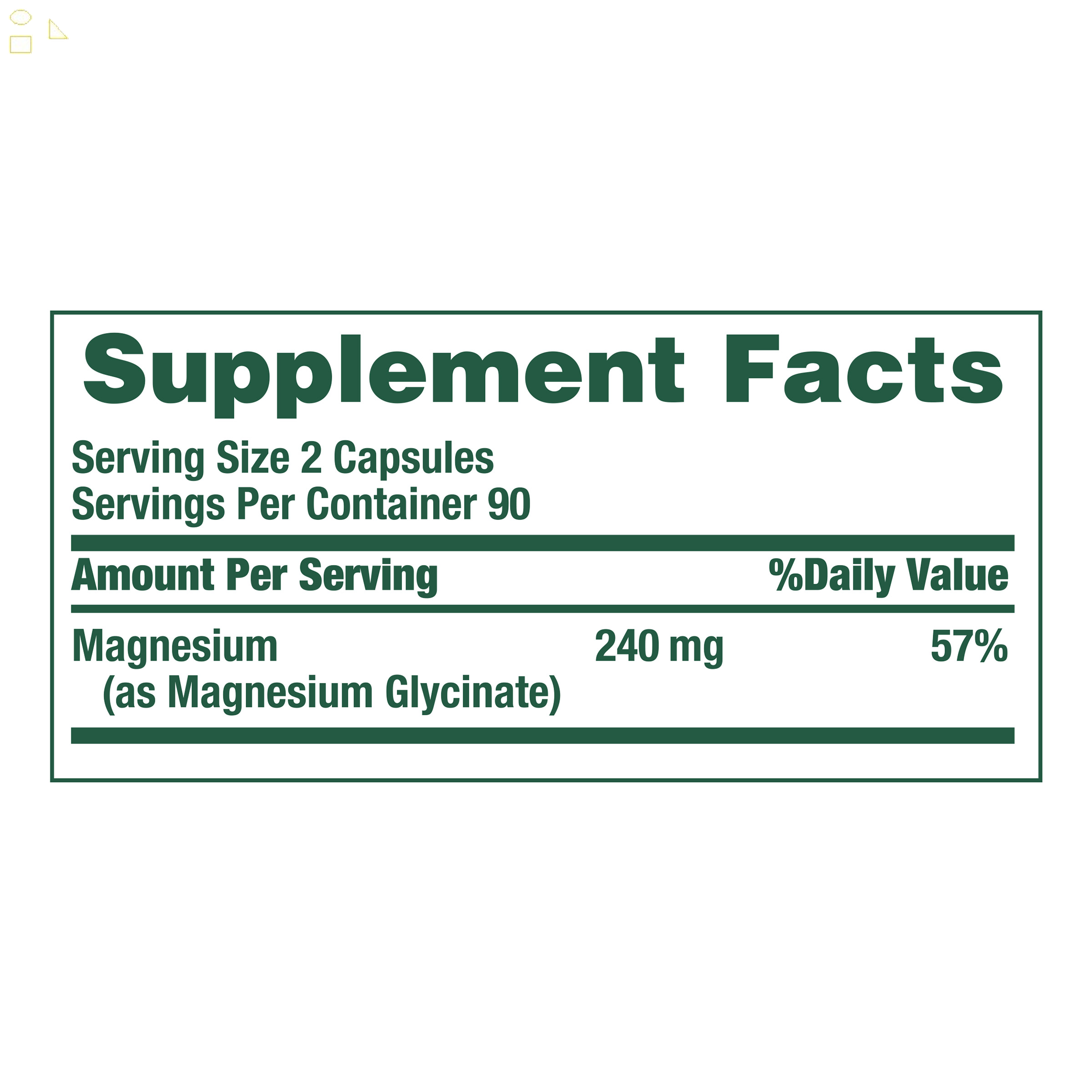 • 240 mg Magnesium Glycinate per Two (2) Capsule Serving