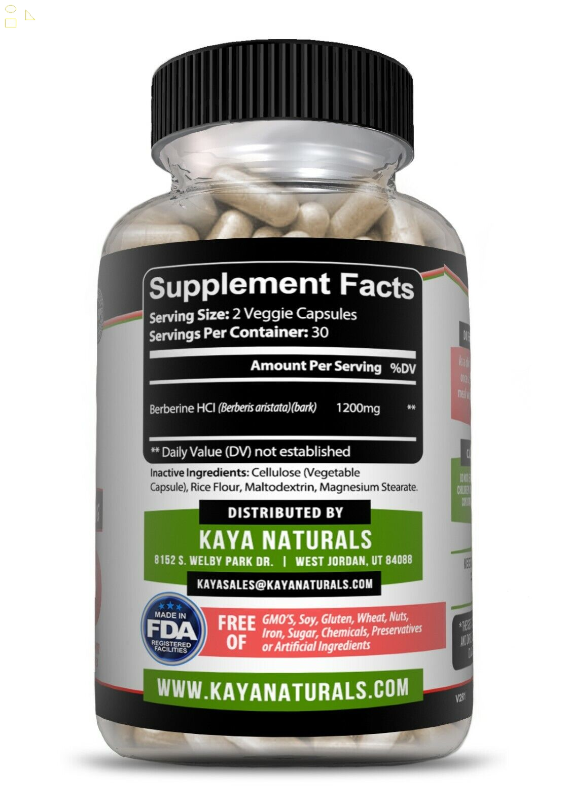 - ✔️SAFETY ASSURED AND QUALITY - Kaya Naturals Berberine Extract is 3rd-party tested for purity and manufactured in the USA using imported and domestic ingredients in a cGMP compliant facility. It is great for women and men. Our supplement is made with carefully-selected, premium ingredients, and contains NO: Unnecessary binders, soy, gluten, milk, egg, wheat, peanuts, shellfish or preservatives.