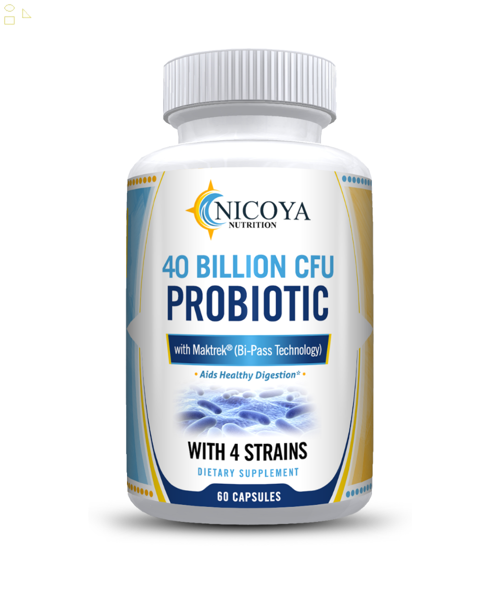 Our all-natural, non-GMO, gluten-free Probiotic 40 Billion CFU supplement contains 6 different types of healthy bacteria chosen to support your gut health. Your gut health has a crucial impact on many areas of your health from your weight to your immune system. Your gut health can also impact your appetite, cravings and even your mental health. A big part of your digestive health is having a thriving microbiome with lots of healthy gut bacteria. Nicoya Nutrition’ Probiotic 40 Billion CFU supplement can help give your microbiome a boost by directly delivering probiotics where they need to be in order to thrive. Some probiotics dissolve in the stomach before the bacteria can reach their final destination. We use MAKTrek technology to make sure you get the best results. Rest assured that all of our supplements are manufactured in the United States and third party tested for your peace of mind.