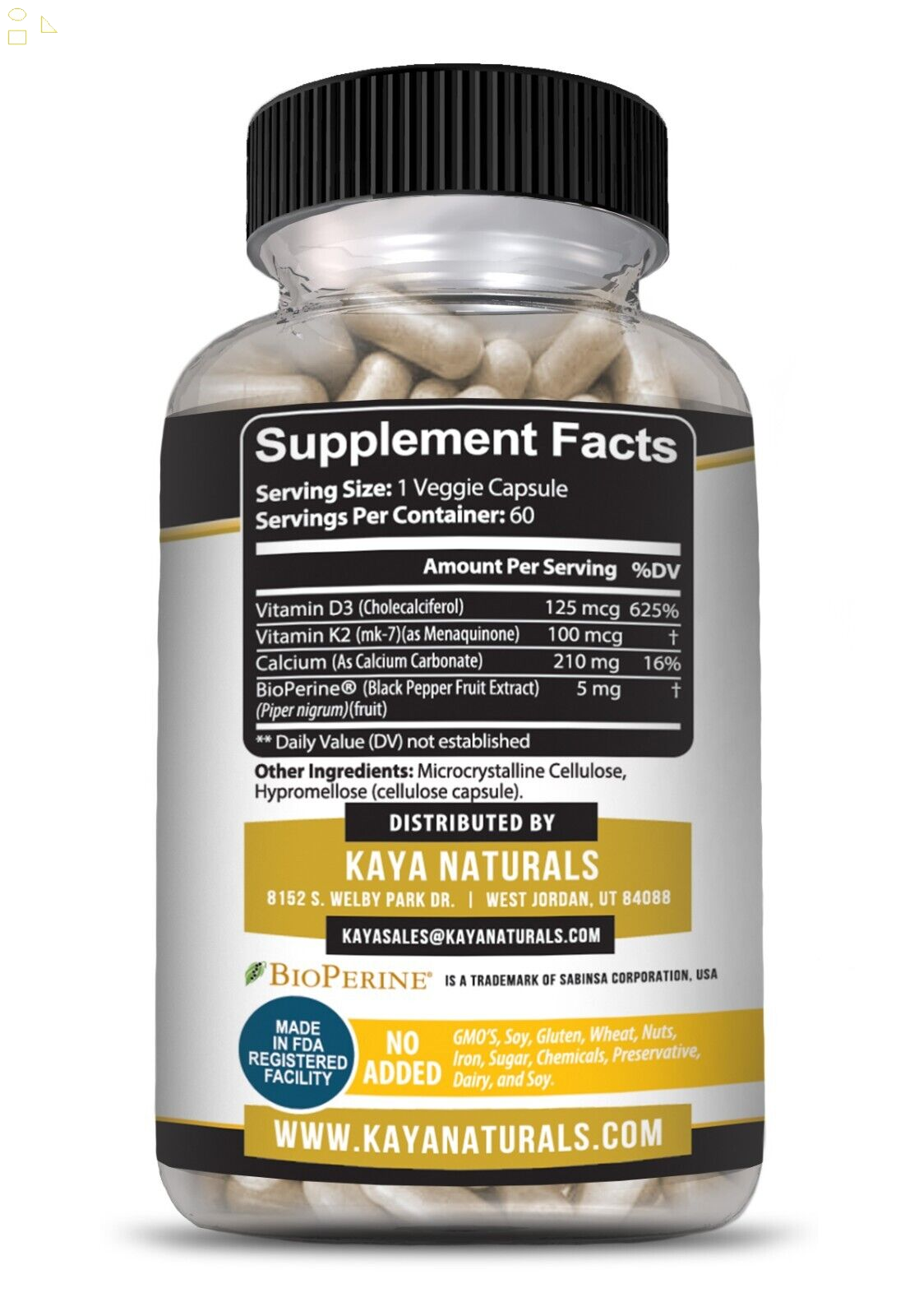 Vitamin K2 (MK7) + D3 (5000IU) | Bone and Heart Health Formula | Immune Support | 60ct