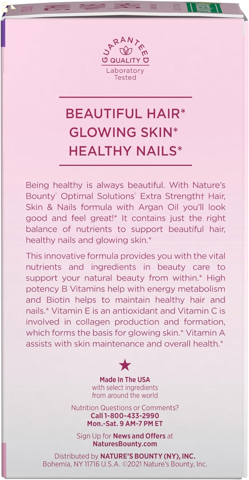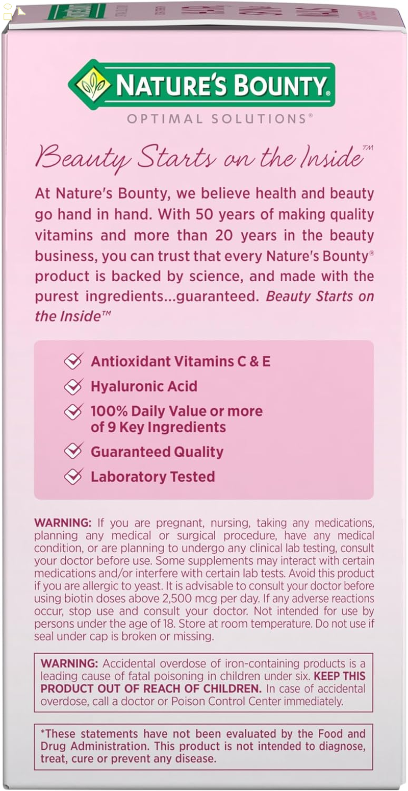 - WITH BEAUTY-SUPPORTING BIOTIN: Nature's Bounty Hair, Skin & Nails vitamins contain beauty-supporting biotin; a vital nutrient that helps to maintain healthy hair while supporting overall beauty (1)