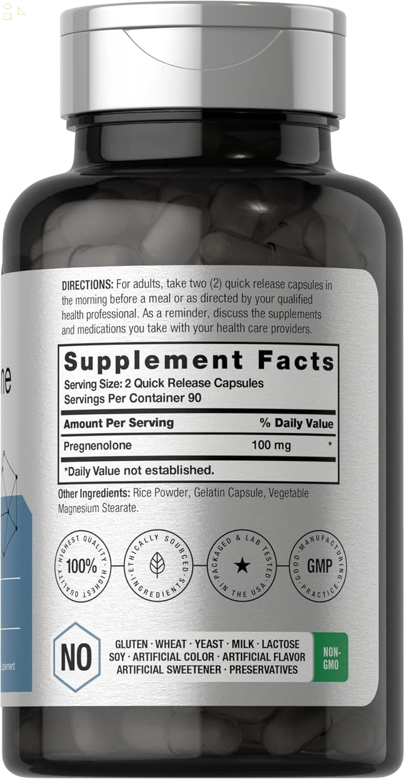 - QUICK-RELEASE CAPSULES: Delivers 100 mg per serving of pregnenolone for daily support